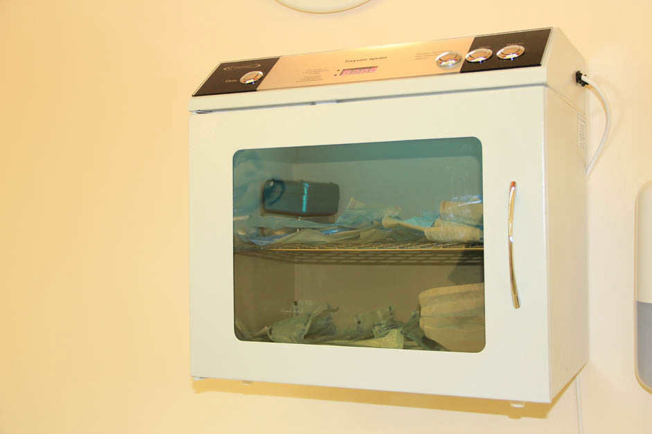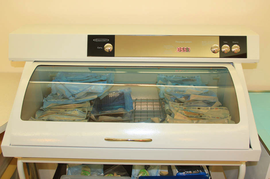С целью обеспечения асептических условий, в стерилизационном отделении, как и в каждом врачебном кабинете, установлены бактерицидные лампы. А так же, для обеззараживания воздуха используется ультрафиолетовые бактерицидные облучатели - рециркуляторы воздуха нового поколения, созданные для работы в присутствии людей.